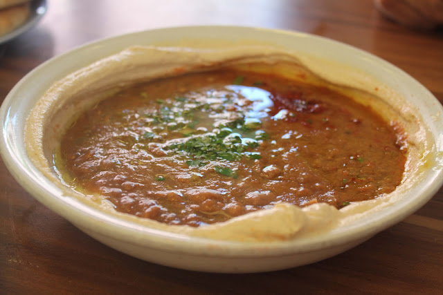 Subito dopo, un succo di barbabietola e carota al Loveat e il più buon hummus della mia vita, da Abu Hassan.