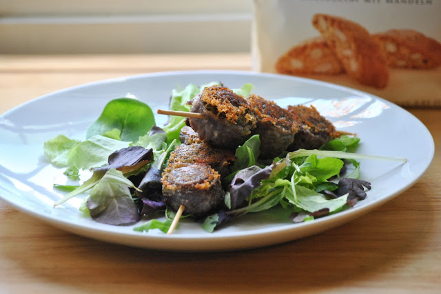 Involtini di manzo in crosta di cantucci alle mandorle