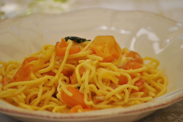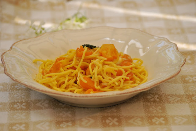 Spaghetti alla chitarra con pomodorini gialli